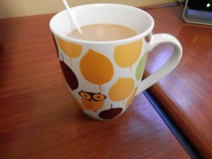 Love my coffee in my Rachel Ray owl mug. One of the reasons I get up in the mornings!!