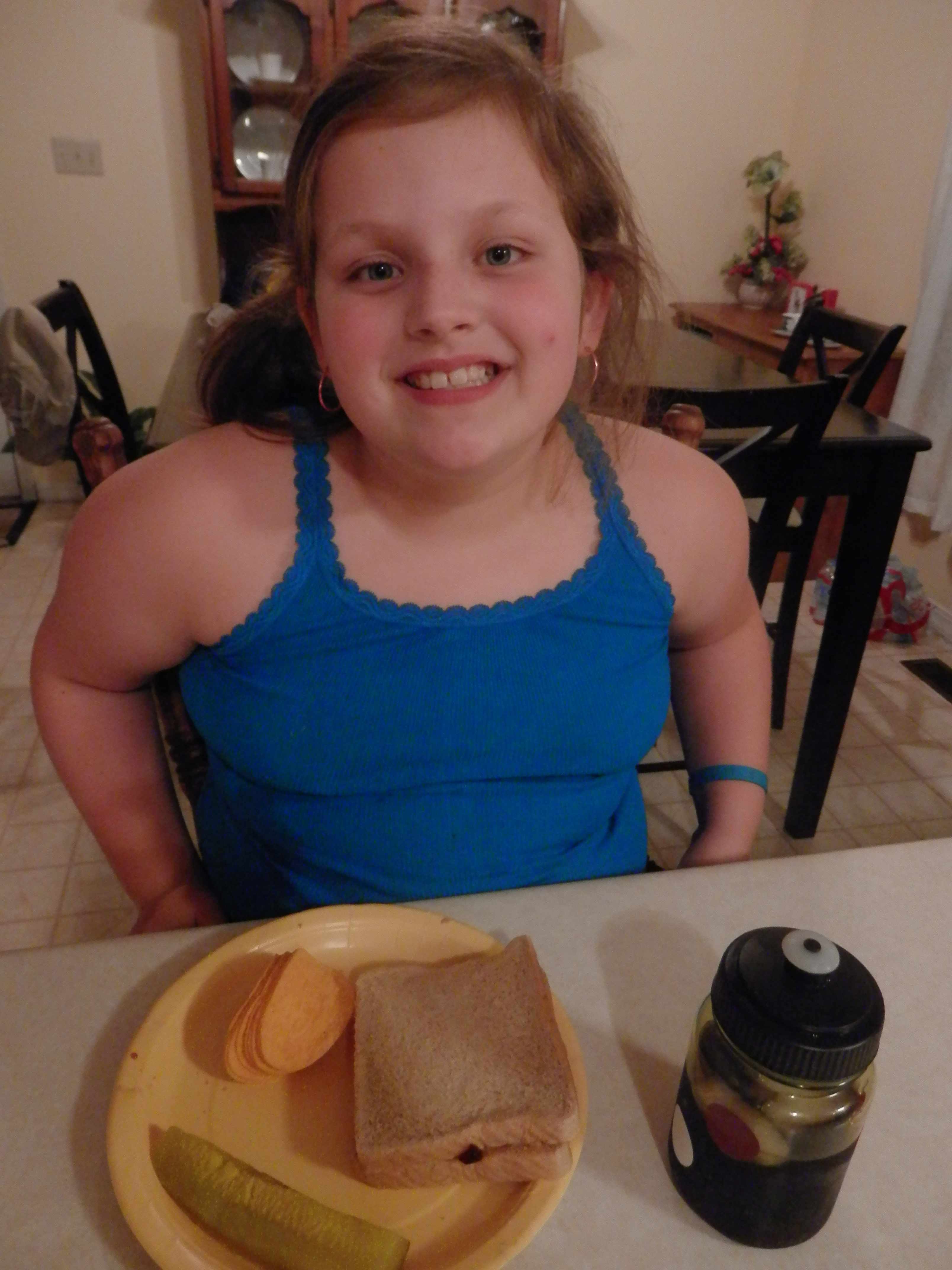 One evening Miss Neenee wanted to make her own dinner. So, I did some housework, while she was busy in the kitchen. On the menu was a peanut butter & jelly sandwich, cheese Pringles, a dill pickle & diet dr. pepper. Does she need me for anything anymore???