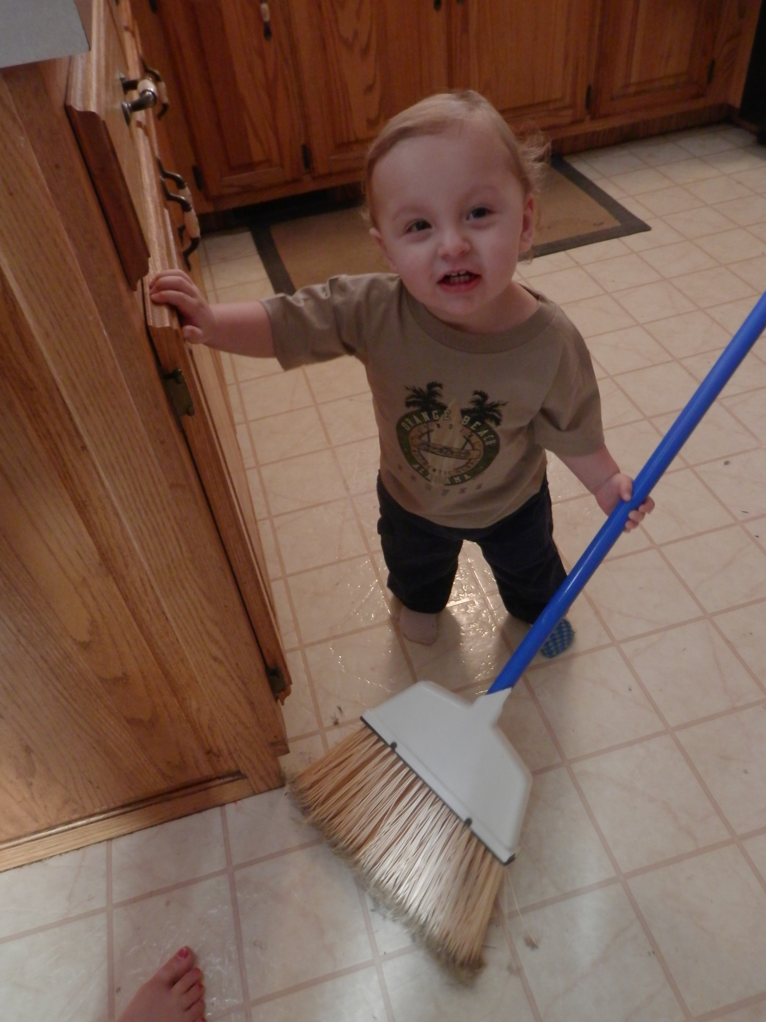 My favorite cleaning service was in the house this week. Not only does he sweep, he cleans the toliet, empties out my cabinets, throws lots of stuff in the garbage, & can dust the coffee table in his socks. We may or may not tell his parents about all the great things he does each visit. That way, they may or may not let him keep coming back.