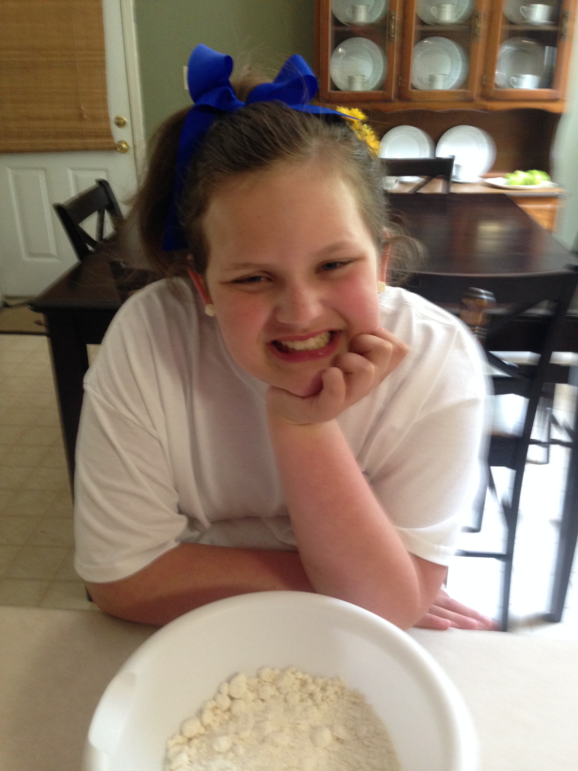 My little girl loves to help.  She especially loves to help me & her Daddy cook.  She has become quite the baker.  She got cupcake pans, cake pans, and a lot of bakery paraphernalia for Christmas last year.  I have to say she has put it to good use.  She loves to help her Daddy in food prep for the grilling he does.  She has her hands in the muffin mix & can peel boiled eggs like nobody’s business.  I love having her around to help me out.