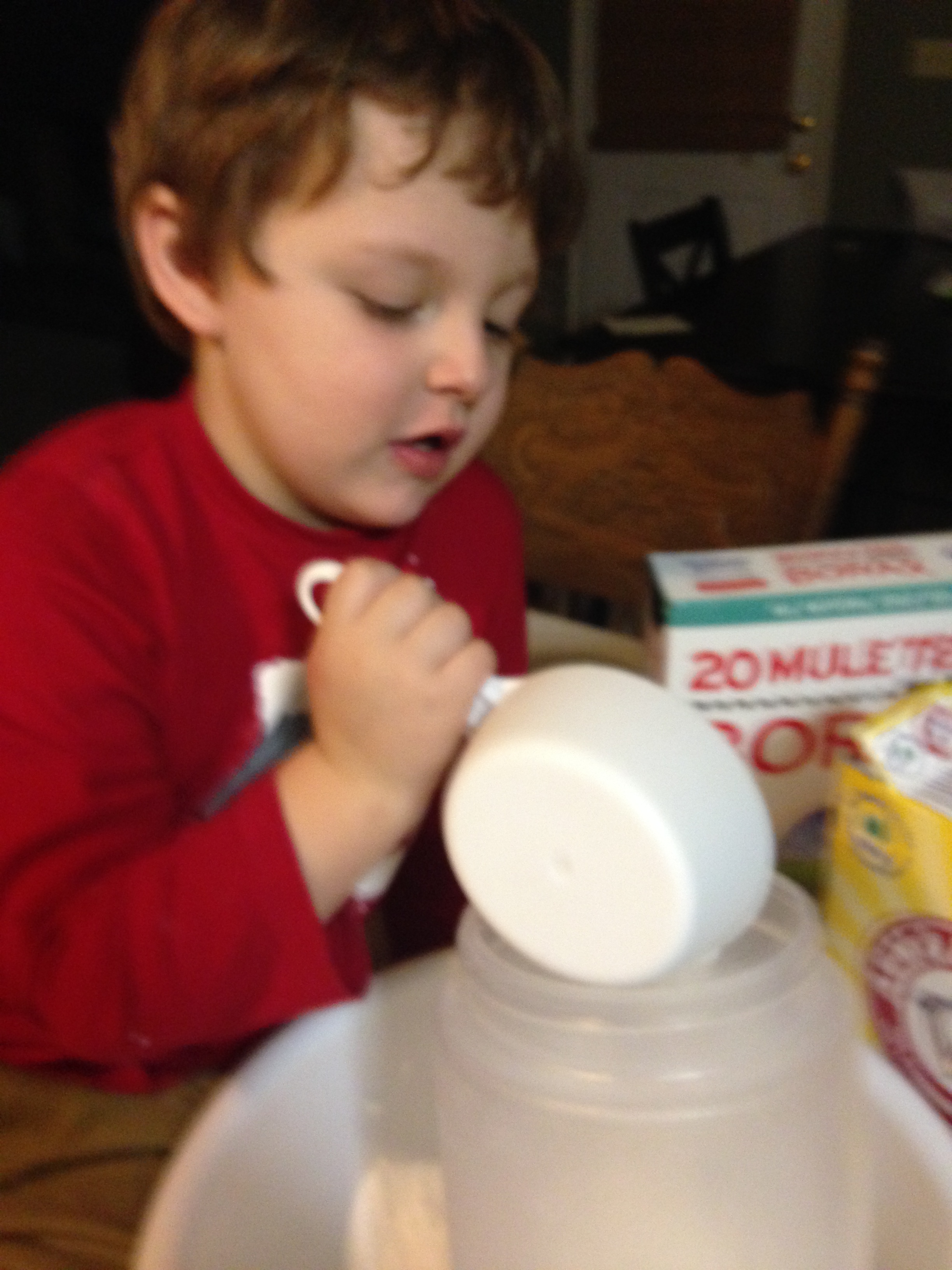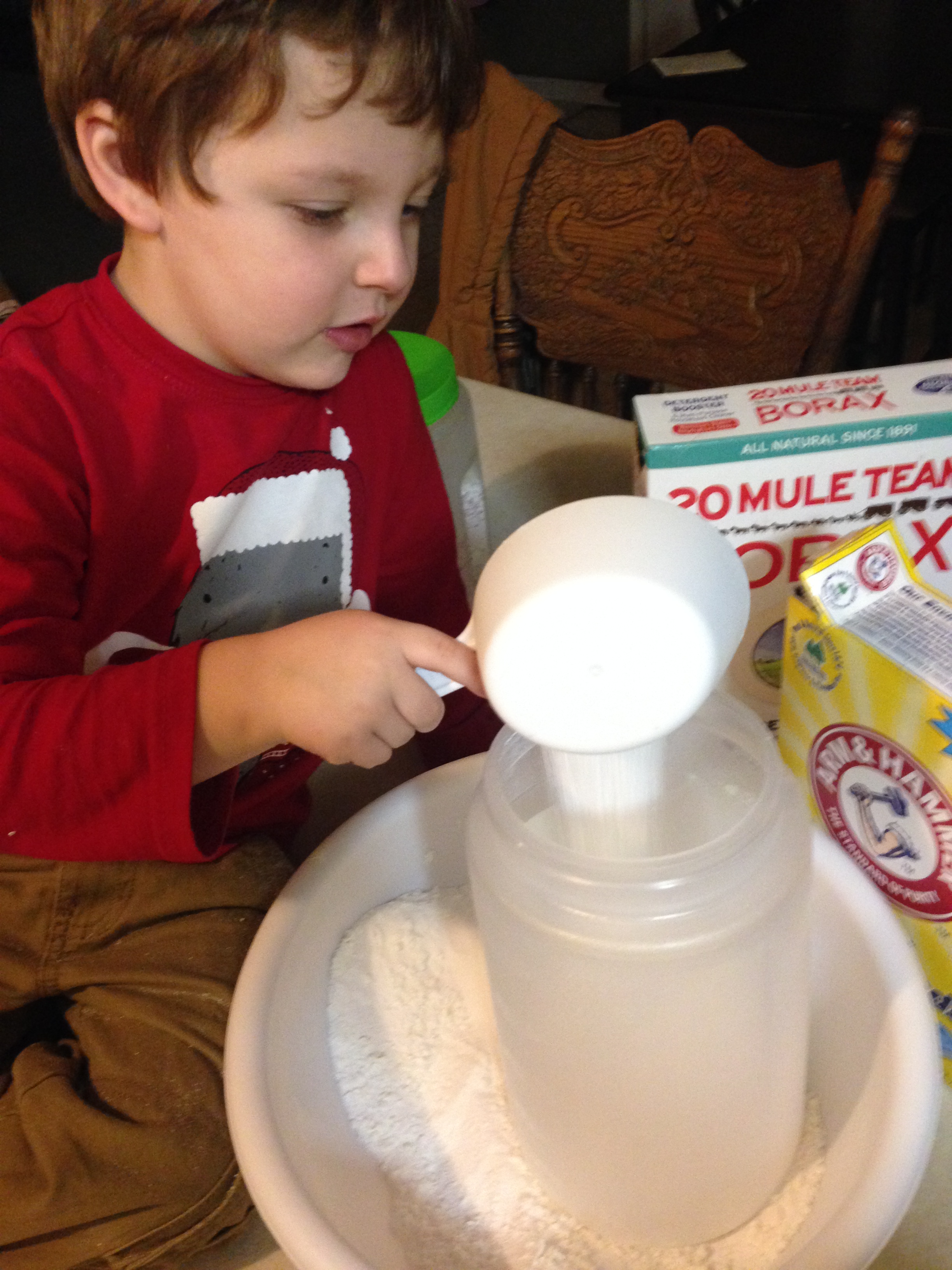 Speaking of which, we made our very own laundry detergent, this weekend. Here he is being a big ol’ helper.
