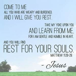 Come to Me, all you who labor and are heavy laden, and I will give you rest. 29 Take My yoke upon you and learn from Me, for I am gentle and lowly in heart, and you will find rest for your souls. (NKJV)